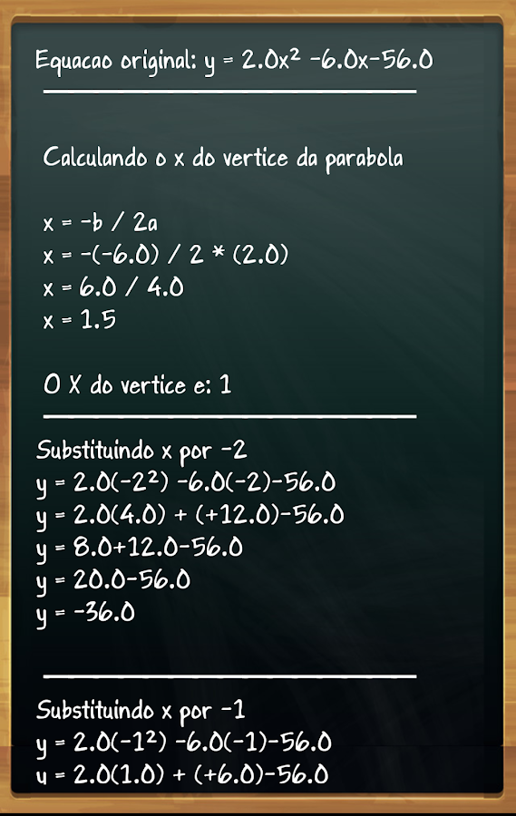 Aplicativo gratuito que auxilia os estudantes ao explicar passo-a-passo todo o desenvolvimento do cálculo para a resolução de problemas matemáticos. Atualmente ele realiza cálculos de MMC, equação do 2 grau, conversões numéricas, calculo de figuras geométricas como trapézio, quadrado, retângulo, hexágono, circunferência subscrita no quadro, teorema de Pitágoras, entre outros.